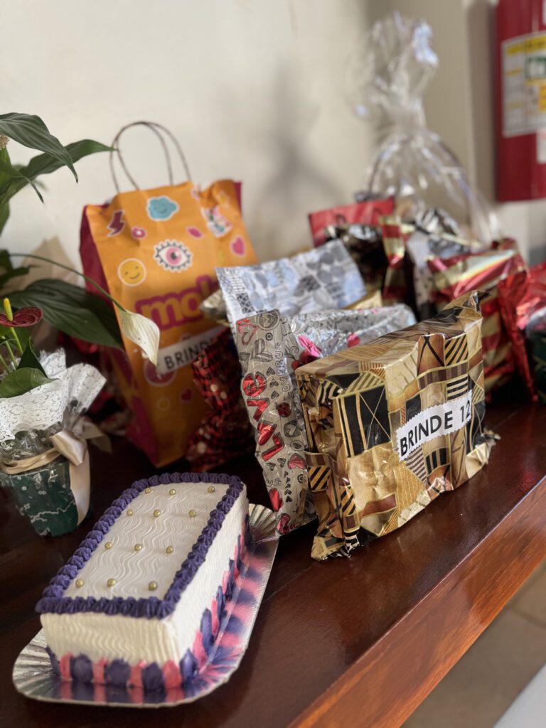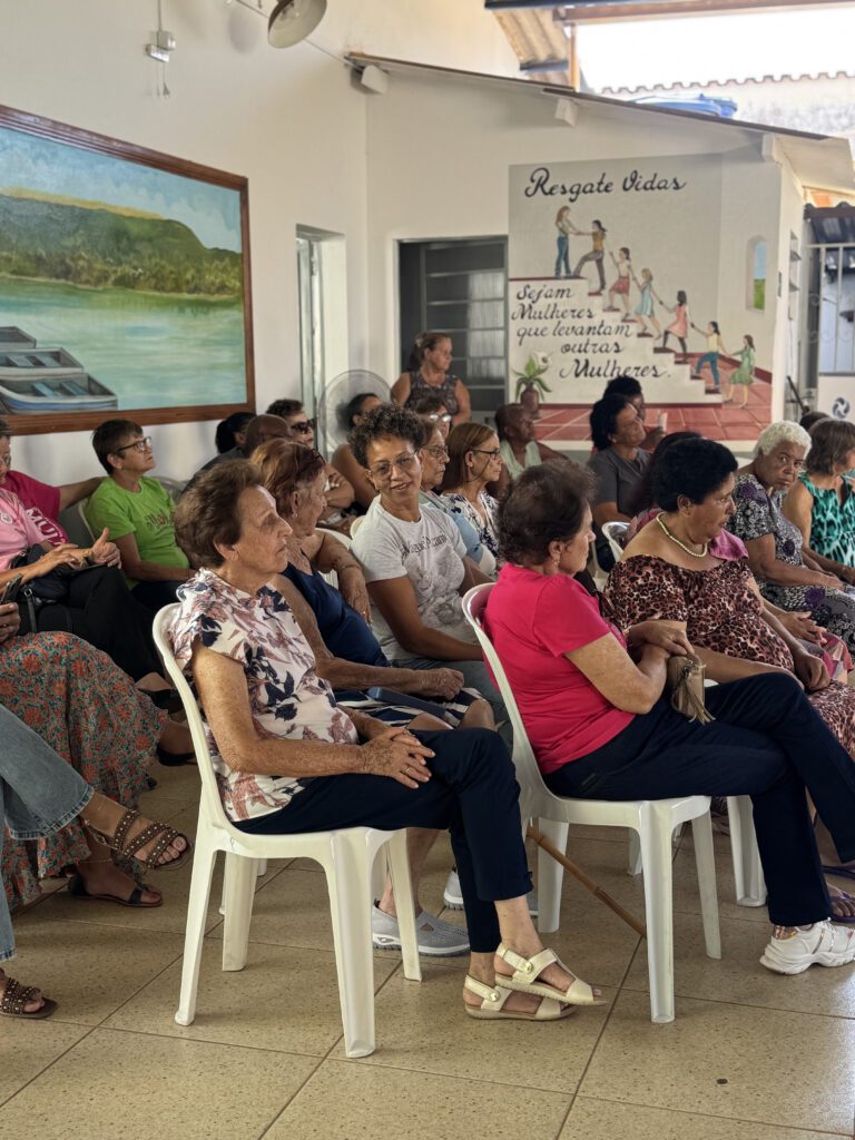 Além das atividades formativas, houve distribuição de brindes, picolés e, ao final, um momento de confraternização com confeito de bolo e partilha entre as participantes, fortalecendo o espírito de união e convivência comunitária.