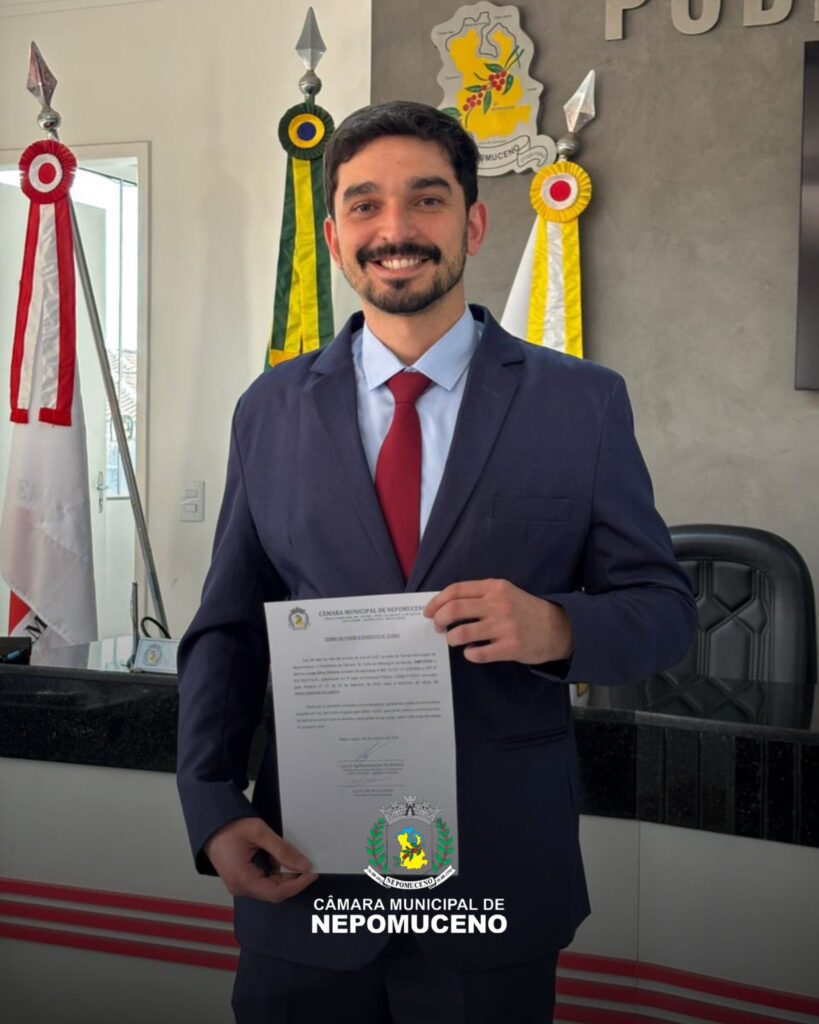 Em sua nova função, ele assume o compromisso de atuar com responsabilidade, ética e dedicação, contribuindo para o bom andamento dos trabalhos internos e o fortalecimento das ações desenvolvidas pela Câmara em benefício da população de Nepomuceno.