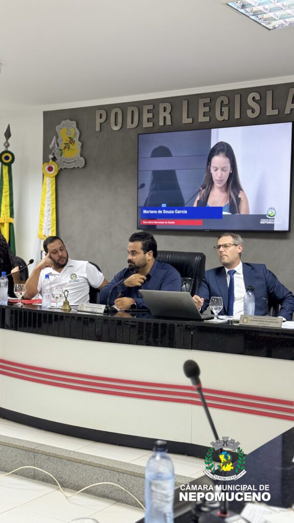 A Câmara Municipal de Nepomuceno recebeu, durante reunião ordinária, a secretária municipal de saúde, Mariane Souza Garcia, que apresentou um panorama detalhado sobre a aplicação de recursos, funcionamento dos serviços e planejamento da saúde pública no município.